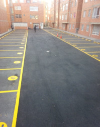 Demarcación con pintura de tráfico en parqueaderos, canchas deportivas.
